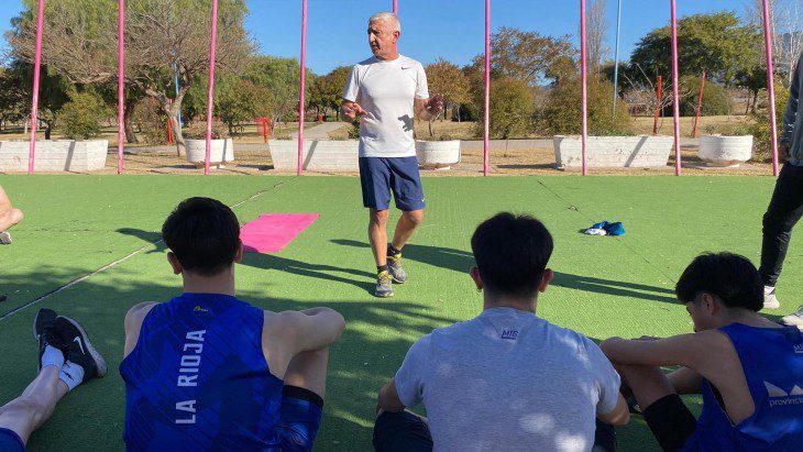 La cita se dio en el parque de la Ciudad de La Rioja, rodeados de las montañas y un gran paisaje. Al iniciar y luego de la presentación, Leonardo Guzmán comenzó explicando la importancia del Yoga en los deportistas: “El problema más grave que tenemos nosotros es cuando respiramos, porque no usamos toda la capacidad pulmonar que tenemos. Trabajar en ello nos va a dar un extra no solo en la parte respiratoria, sino también en la parte muscular debido a una mejor circulación del flujo sanguíneo”.